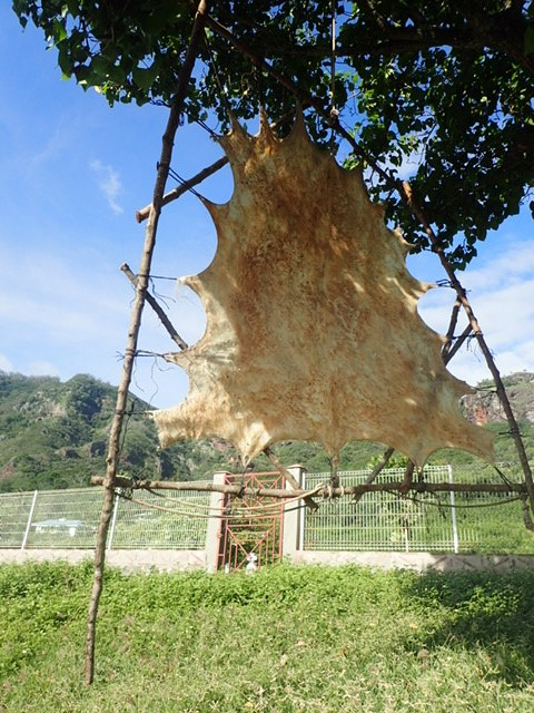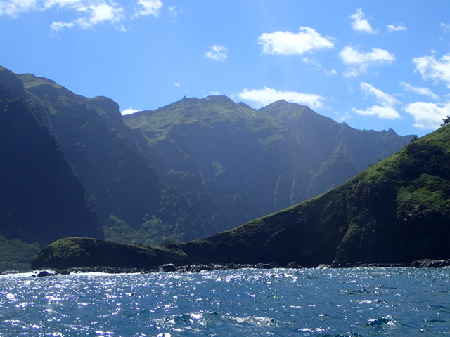 Well that got your attention. Happy to report no people were involved but an inflatable kayak owned by our buddies Bill and Kate was munched. Boaty folk get ashore in Taiohae Bay by heading inside a small breakwater to a couple of ladders where dinghies can be tied off. Coincidentally, this is also the place where the fishermen clean their catch after returning in their small boats.