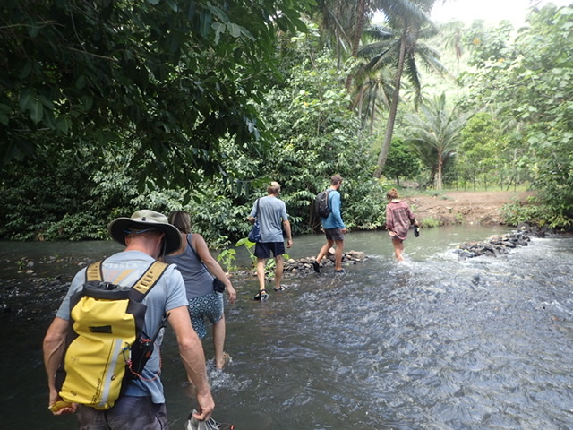We’re here with our little Panama / Contadora gang. 5 boats. 7 people. 2 couples. 3 single handers. Dave and I walked up to a 350m waterfall about a couple of hours from the sweetest village you’ll ever come across. Maybe 8 houses, all cared for with fruit trees and vegetables growing. No road access, just a couple of grassy paths and a french phone box. It felt a bit Local Hero like. (Watch the film…..for the phone box).