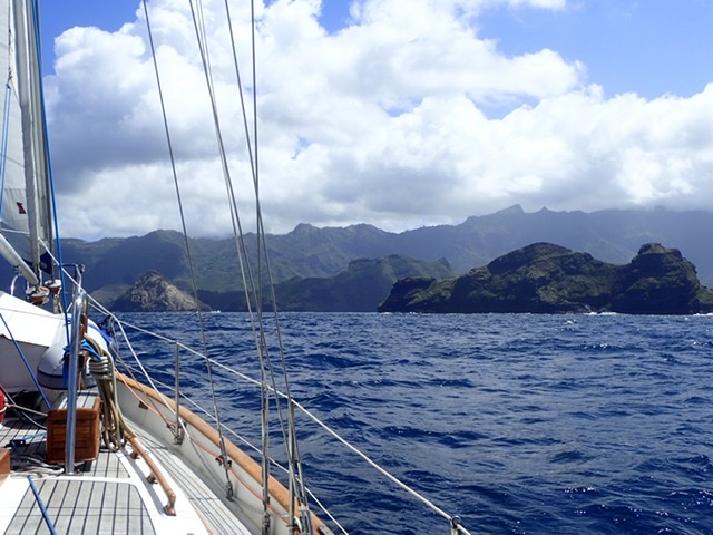 It’s been a bit Windy Miller for the past few days so we hightailed it all of 6 miles round to Daniel’s Bay for a bit more protection. The main bay in Nuku Hiva gives access to essential services such as check in and ice cream shops, but the wind and swell wrap round the headland and deliver a free unwanted rock and roll ride. Time to move when the wind picks up.