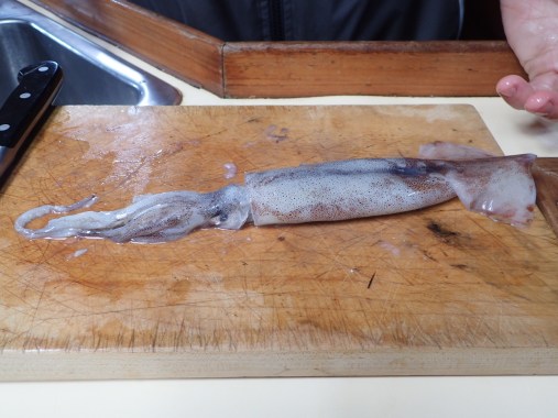 Cleaning squid…. a new skill for dave